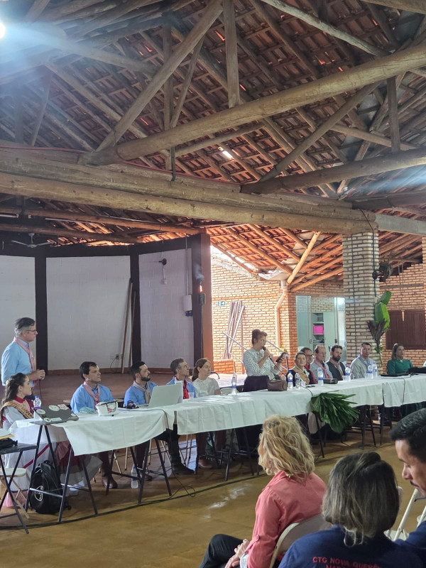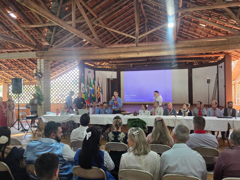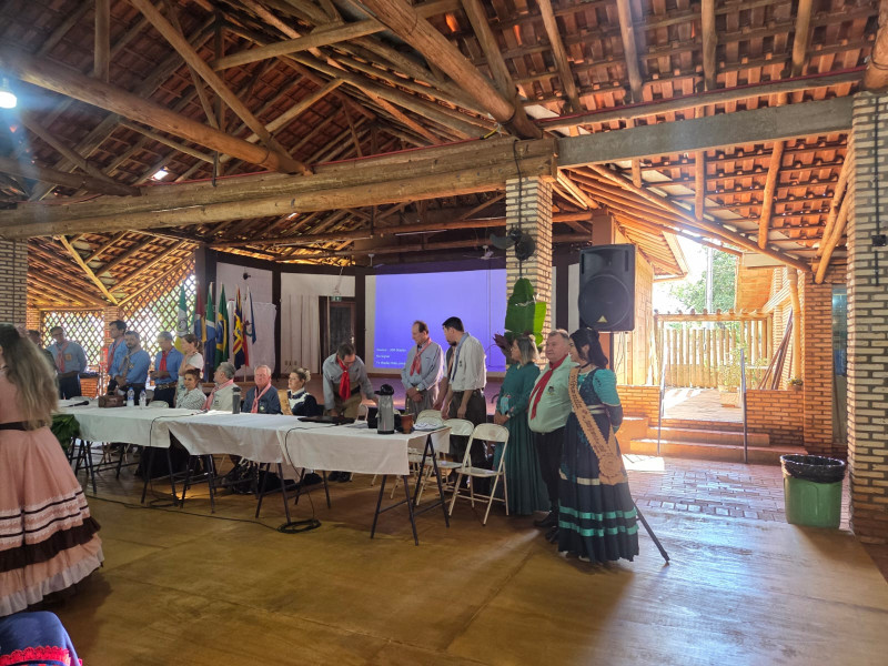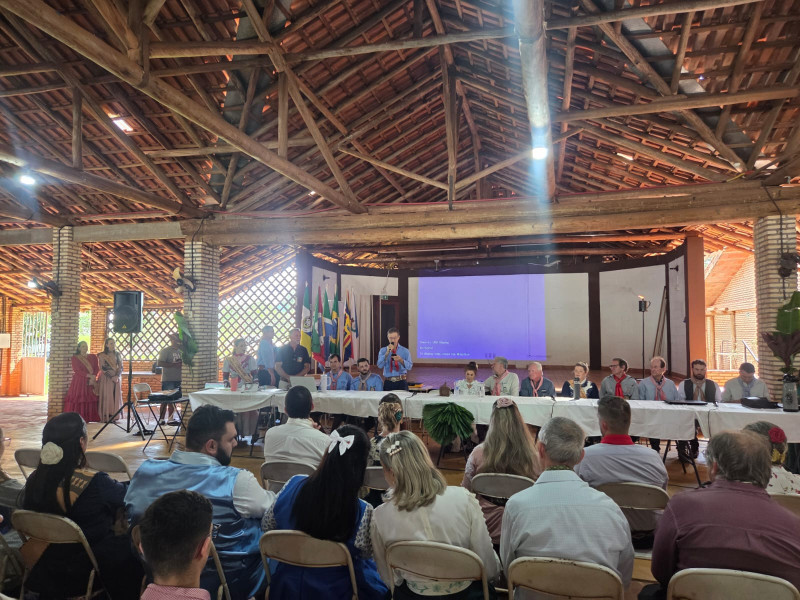 O presidente do MTG-MS, Sr. Agadir Mossmann, e o Patrão do CTG Tropeiros da Querência, César Augusto Teló, enfatizaram a importância do evento para debater as ações do tradicionalismo no Estado.