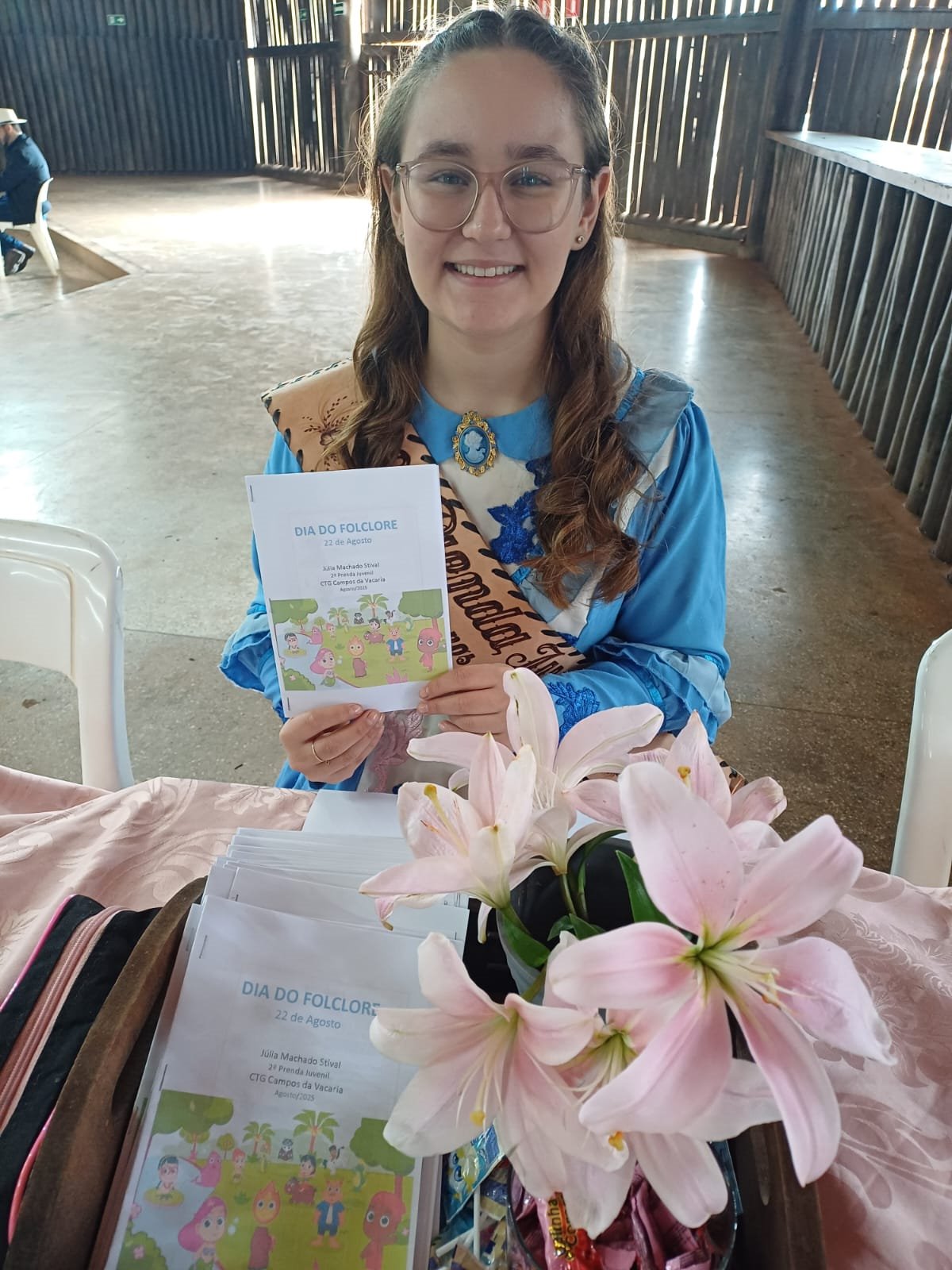 A 1ª Prenda e diretora de Arte e Cultura do CTG Querência do Sul, Katharine Pederiva, é a responsável pela organização da oficina cultural alusiva ao Dia do Folclore na instituição. Mesmo com algumas pausas por conta da pandemia, ela conduz a atividade há anos. “Esta atividade está sob a minha responsabilidade e é algo que realizo com dedicação, porque acredito na importância de valorizar o nosso folclore”, disse.