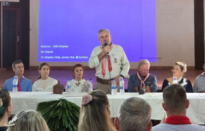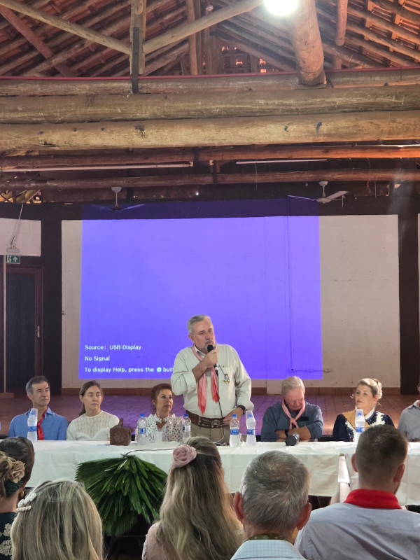 O presidente do MTG-MS, Sr. Agadir Mossmann, e o Patrão do CTG Tropeiros da Querência, César Augusto Teló, enfatizaram a importância do evento para debater as ações do tradicionalismo no Estado.